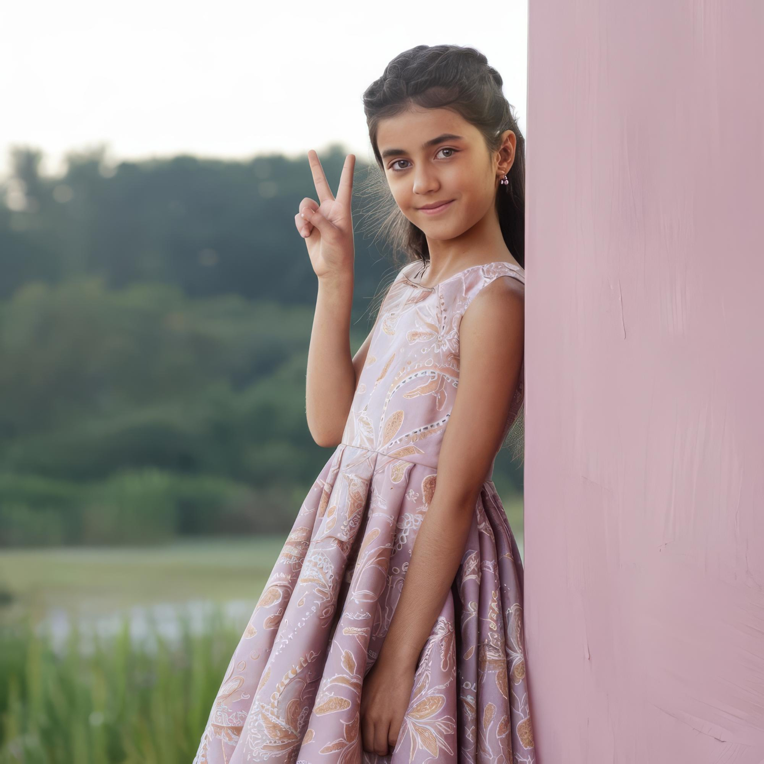 This adorable pinkish maxi frock is designed for little fashionistas. Made with soft, breathable fabric, it features elegant detailing and a comfortable fit—perfect for birthdays, parties, or special occasions. Let her shine with style and grace!